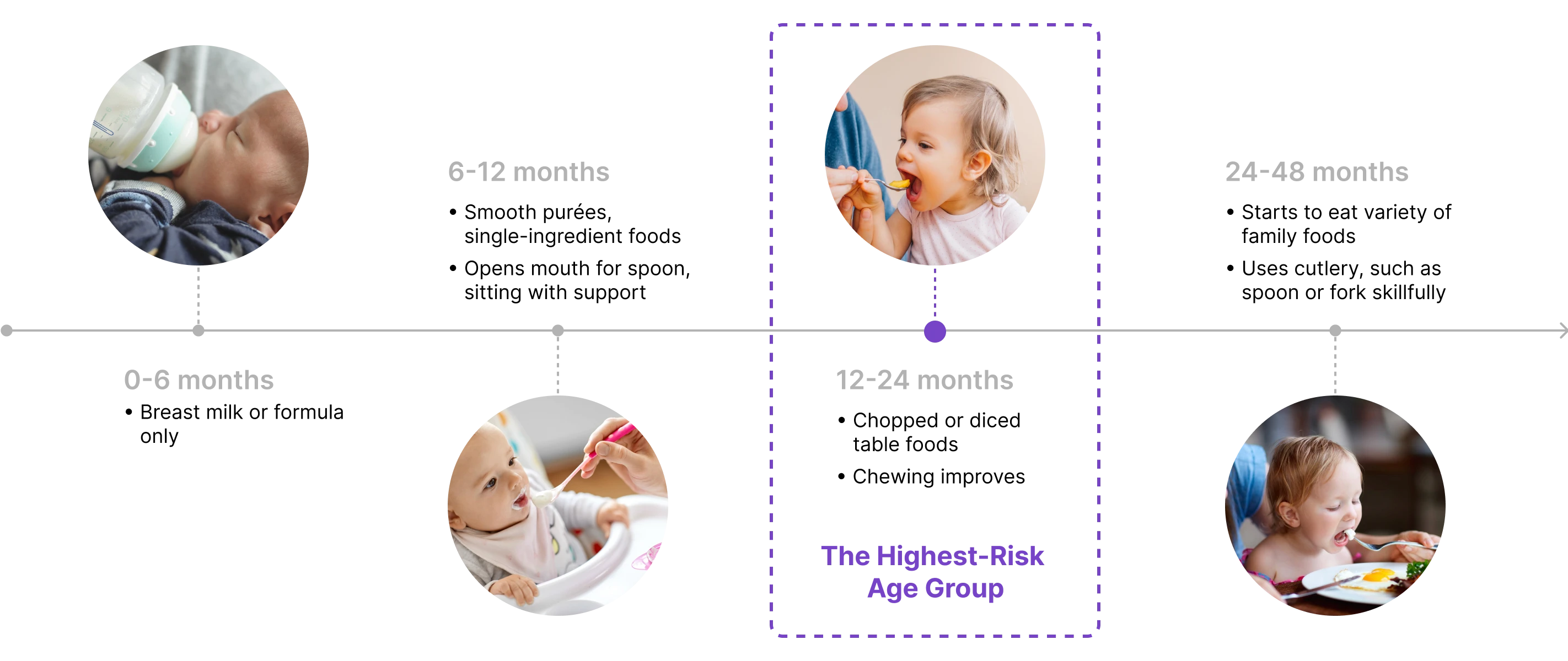 Support caregivers easily prepare appropriate food sizes for toddlers to reduce choking risks